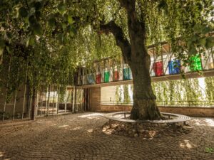 Während Buntglasfenster lange Zeit primär mit sakraler Architektur assoziiert wurden, fanden sie sich im Laufe der Jahrhunderte in unterschiedlichste Bautypologien wieder. Im schweizerischen Romont befindet sich mit dem Vitromusée Romont eines der wenigen Museen Europas, das sich ausschliesslich der Glasmalerei und Glaskunst widmet. Untergebracht ist es im Château de Romont aus dem 13. Jahrhundert, dessen massive Molasse-Sandsteinmauern einen spannenden Kontrast zu den fragilen Glasarbeiten im Inneren bilden. Gerade dieser Kontrast macht den Ort architektonisch interessant, da die Ausstellungssituationen so konzipiert sind, dass Tages- und Kunstlicht gezielt eingesetzt werden, um die transluzenten Eigenschaften der verschiedenen Glasobjekte sichtbar zu machen. Im Gebäude selbst befinden sich ebenfalls Glasgemälde, die sich vor allem in der Orangerie und der Passerelle bestaunen lassen, wenn die Sonne von aussen ins Innere strahlt.