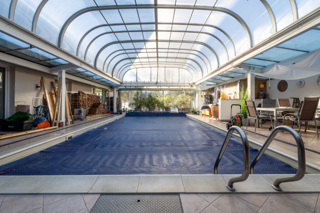 Ihr Schwimmbad nutzen die Bewohner außerhalb der Badesaison als saisonalen Wärmespeicher: Die Wärmepumpe entzieht dann dem 100.000-Liter-Becken die im Sommer und im Herbst die eingespeiste thermische Energie. Dadurch können in der Heizsaison lange Zeit hohe Quelltemperaturen und reziprok ein hoher COP-Wert erreicht werden. Weil die PVT-Hybridkollektoren gedämmt sind, lassen sich sogar im Winter Soletemperaturen der PVT-Anlage von bis zu +15°Celsius über den Plattenwärmetauscher in das Schwimmbecken auskoppeln.